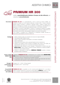 PRiMIUM HR 300 è un superfluidificante a base di polimeri ad elevata stabilità, che consente di ottenere una forte riduzione dell’acqua d’impasto (HR) in miscele contenenti cementi Portland, Pozzolanici o d’Altoforno e aggiunte minerali. L’additivo è indicato per le centrali di betonaggio più avanzate, per la produzione di calcestruzzo preconfezionato da trasportare con tempi di percorrenza particolarmente lunghi, in climi freddi o temperati.