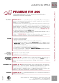 Il prodotto è indicato per confezionare calcestruzzi di vario tipo da fornire e mettere in opera con temperature ambientali maggiori di 20°C, fluidi e caratterizzati da bassi rapporti a/c. Le proprietà dell’additivo consentono di realizzare calcestruzzi anche con un contenuto ridotto di parti fini, pompabili, con spandimenti di classe F5 o F6 secondo EN 12350-5. I migliori risultati di riduzione dell’acqua d’impasto si ottengono combinando l’impiego di PRiMIUM RM 360 con l’additivo coesivizzante in polvere MAGMA P170.